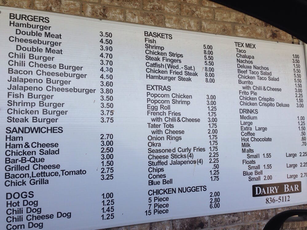 Dairy Bar Menu (Update 2025)